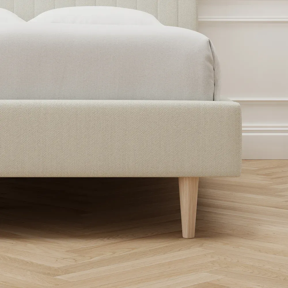 Turn to the Claremont Upholstered Bed Frame for timeless style and ultimate support – no box spring needed. With a padded headboard and mid-century details, it’s the perfect match for any bedroom.