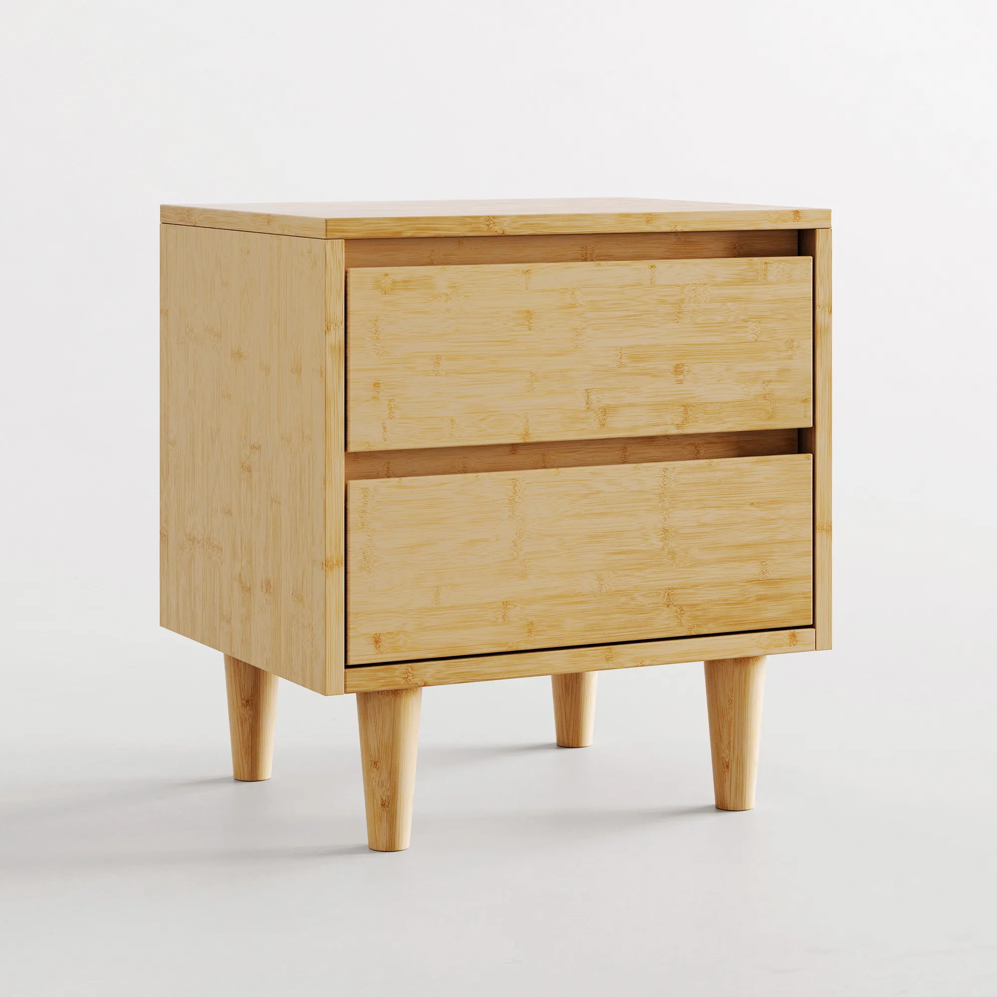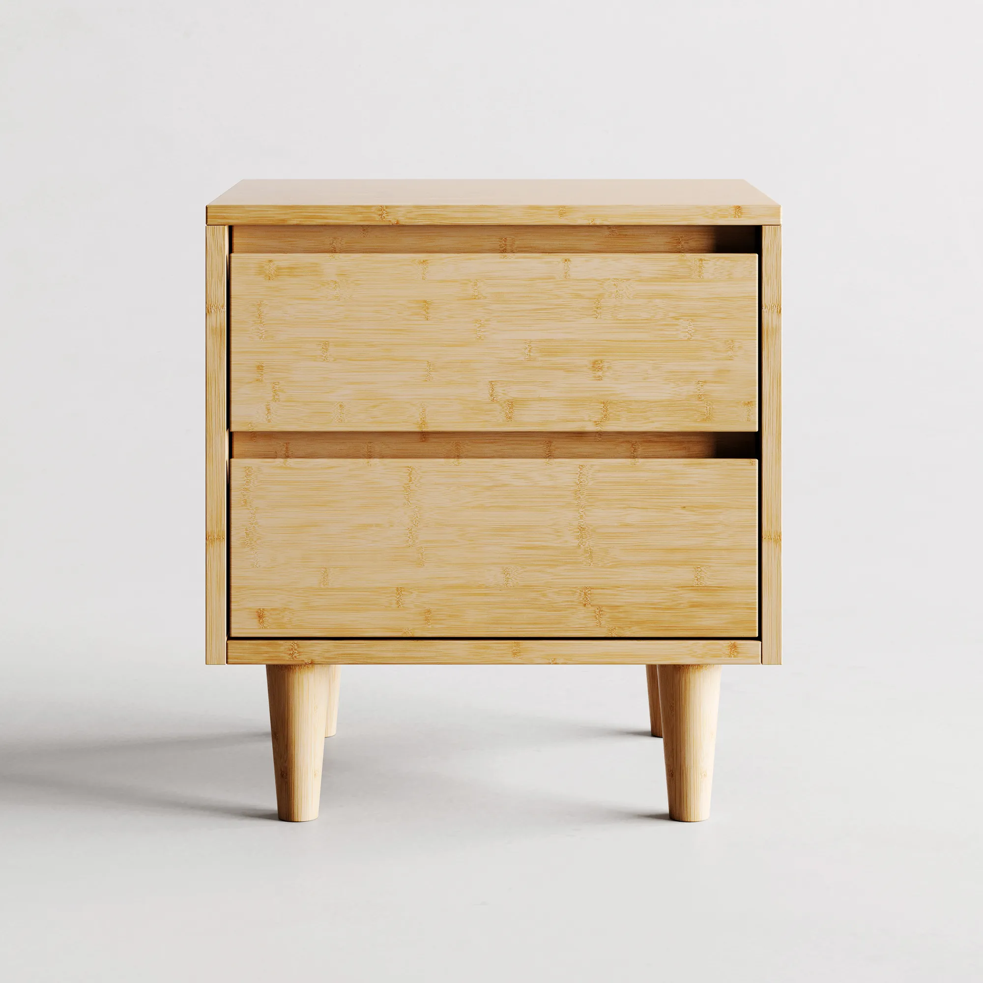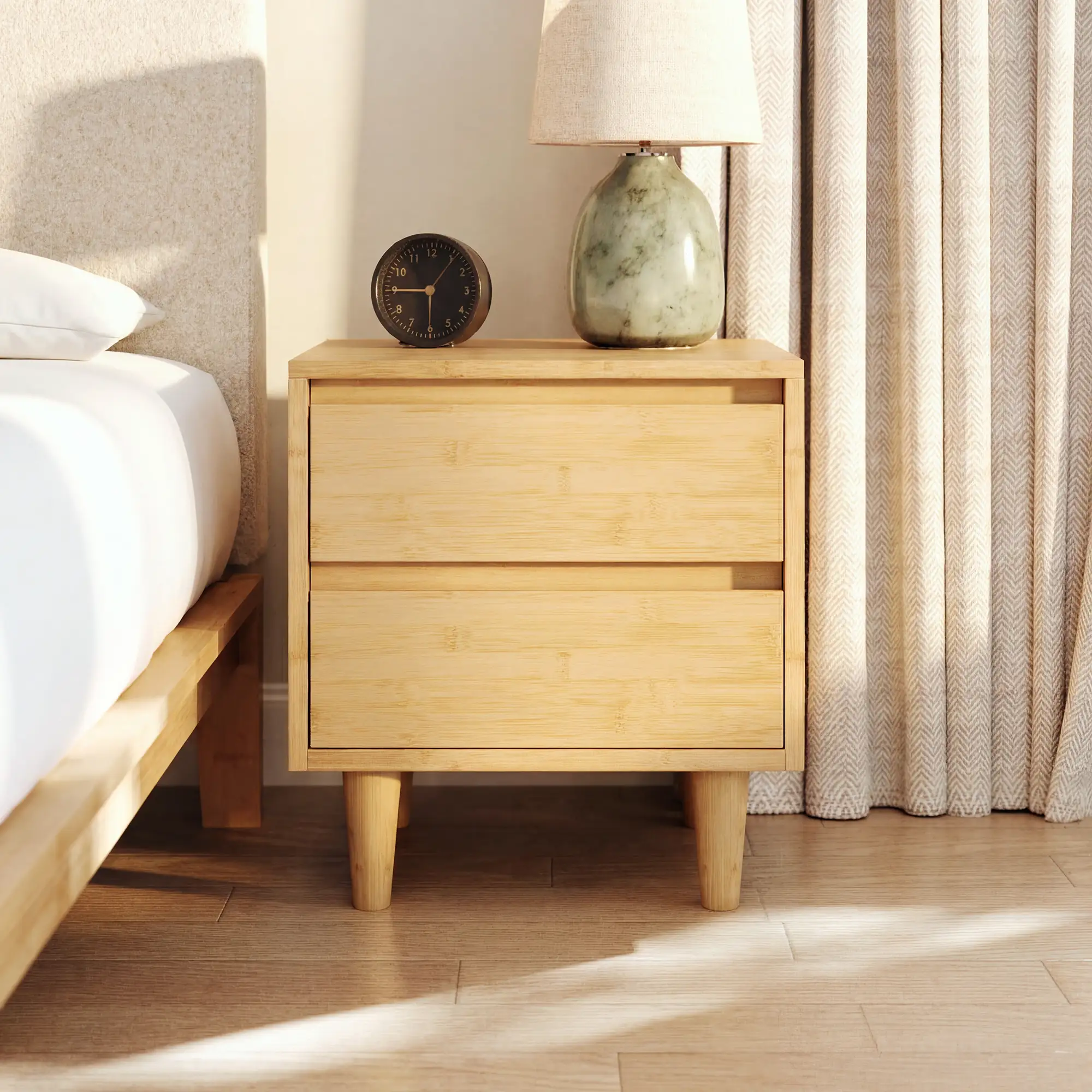 Thoughtfully designed for your bedside. The Bamboo Nightstand combines solid bamboo construction with practical functionality: two drawers, dovetail craftsmanship, and tool-free assembly.