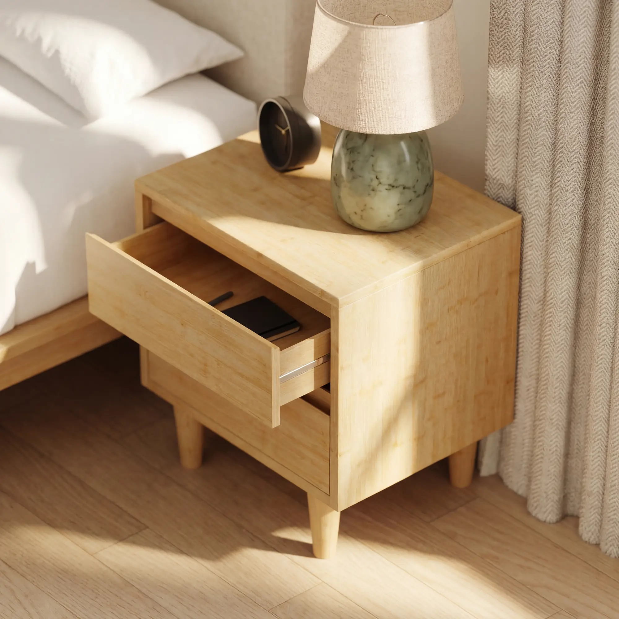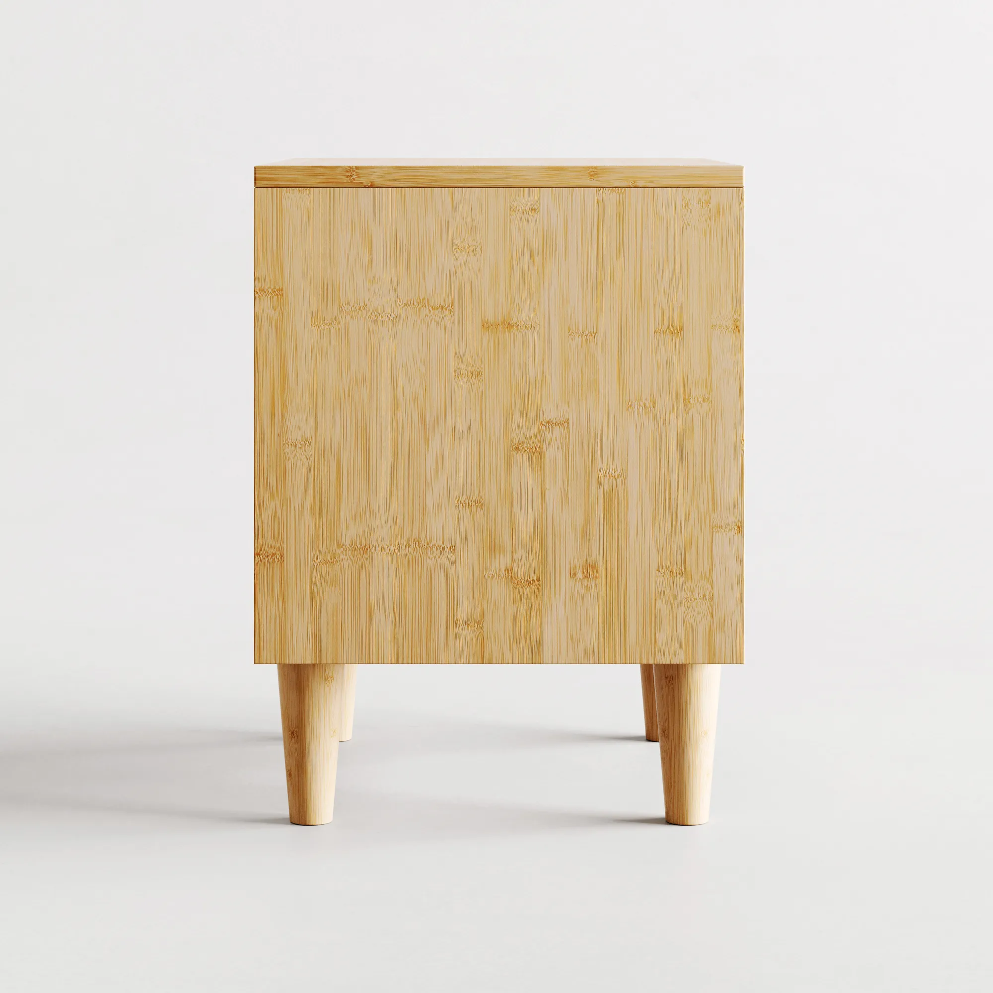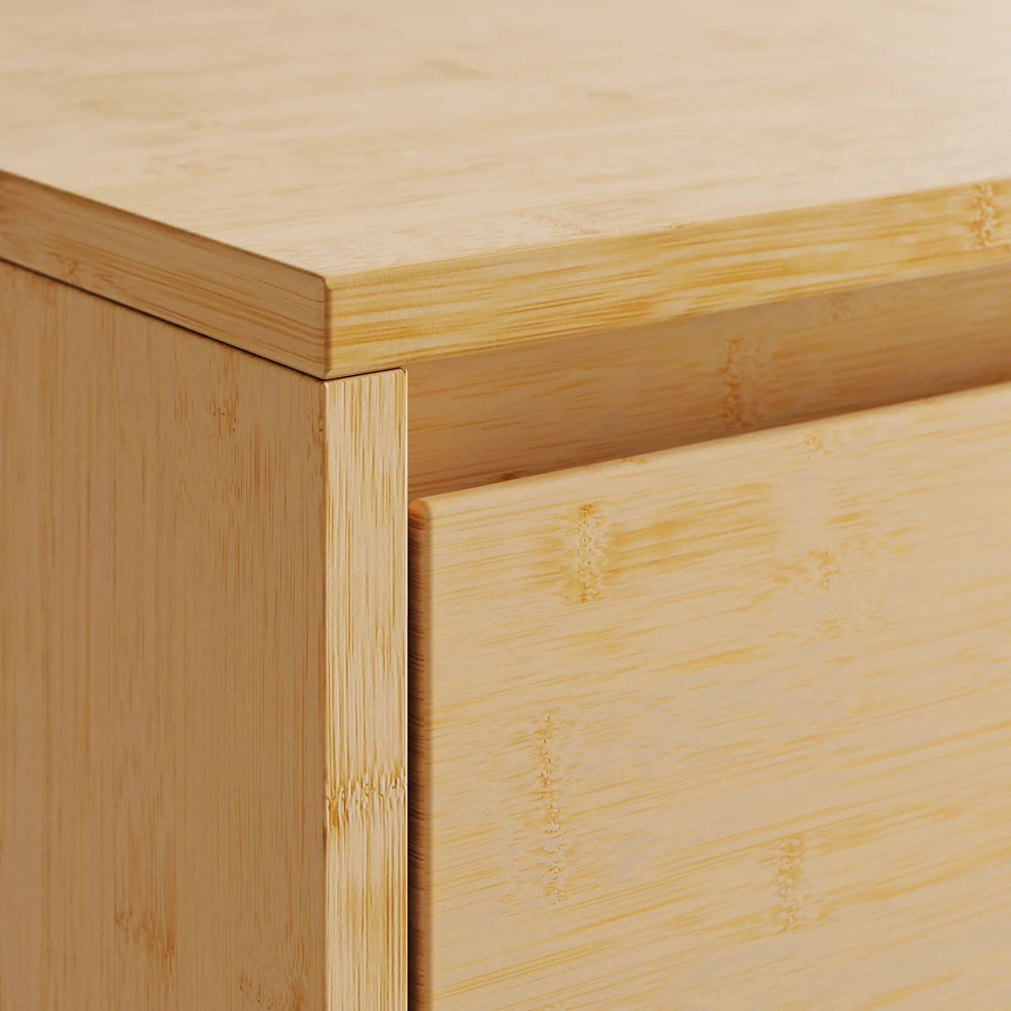 Thoughtfully designed for your bedside. The Bamboo Nightstand combines solid bamboo construction with practical functionality: two drawers, dovetail craftsmanship, and tool-free assembly.