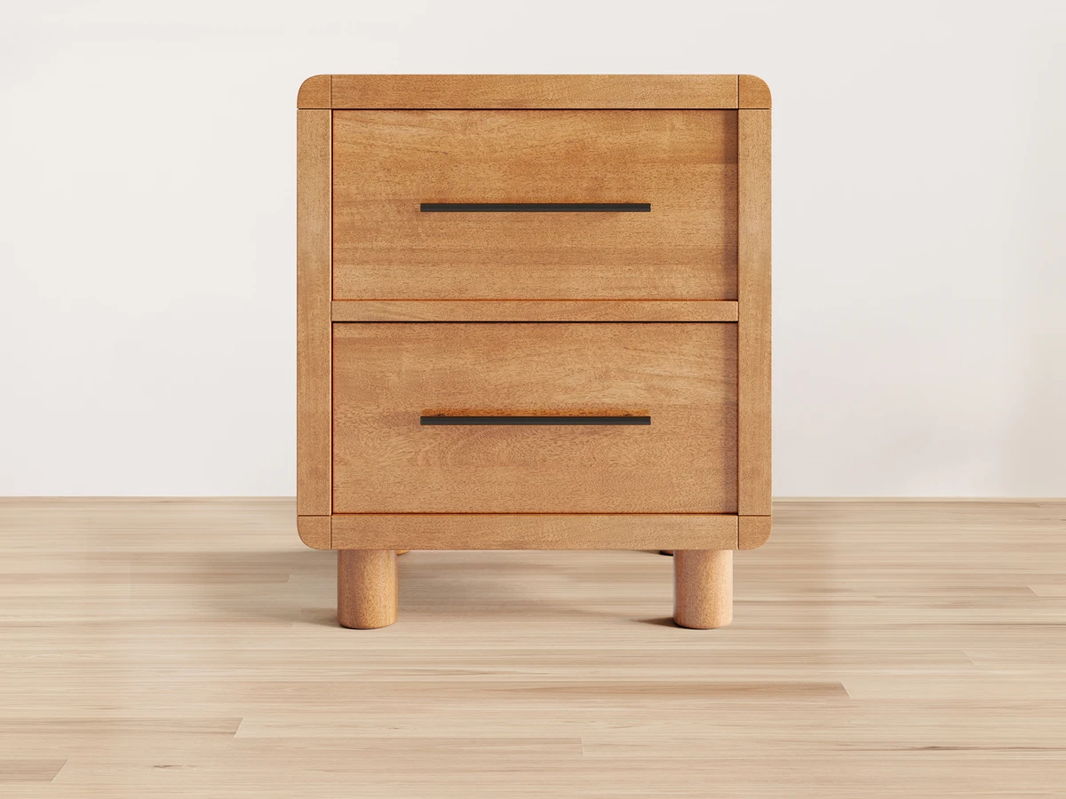 The Mango Nightstand combines natural wood beauty with thoughtful storage, featuring two smooth-gliding drawers and softly shaped profiles. For the full look, find the Mango Bedroom Set.