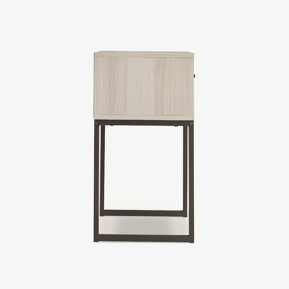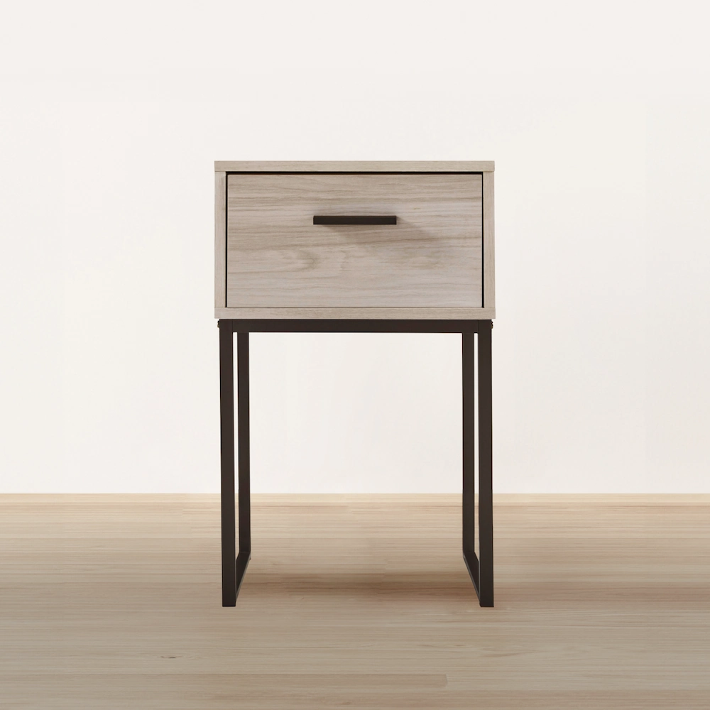The Socalle Nightstand features a modern design with a light natural oak grain finish. Crafted from durable engineered wood, it includes one smooth-gliding drawer for easy organization.