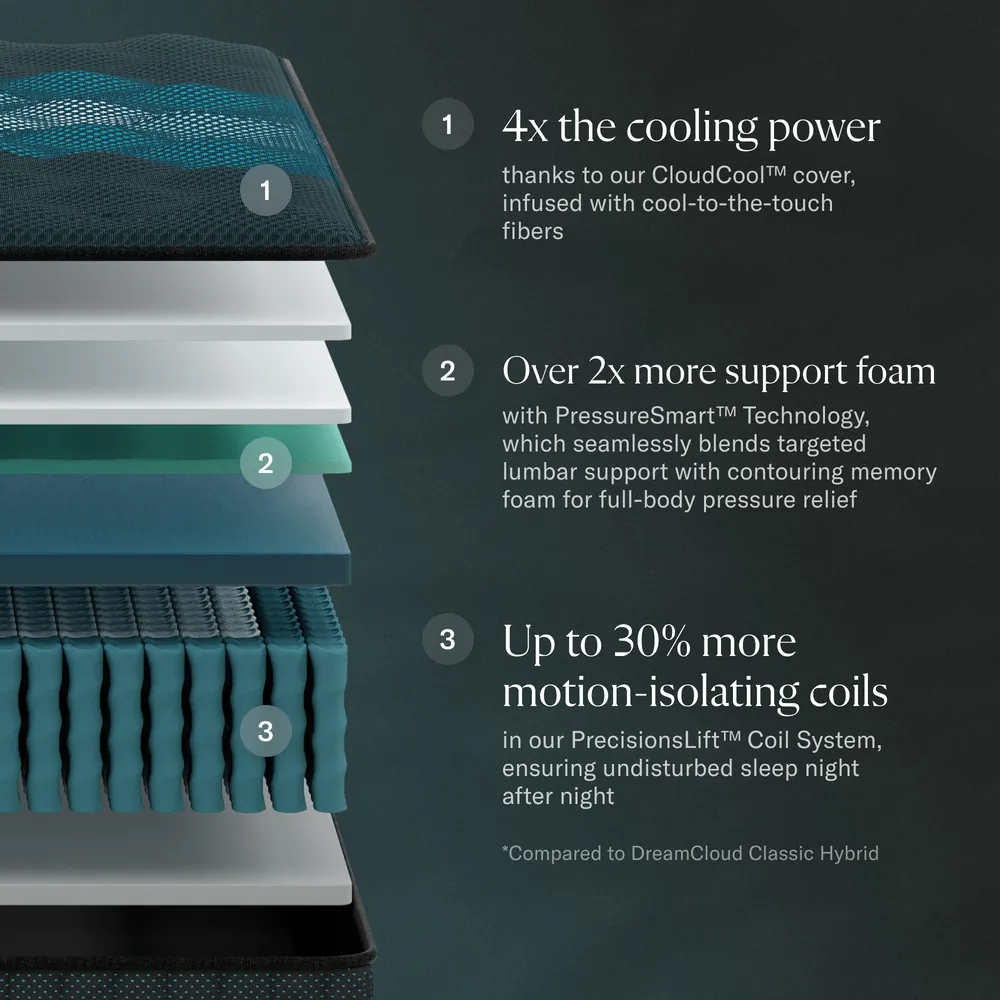 The DreamCloud PressureSmart Plush has just the right blend of cushioning and stability for all-night comfort. PressureSmart™ Plush has a contouring top layer but still maintains some firmness, cushioning pressure points and suiting side, back, and combination sleepers.